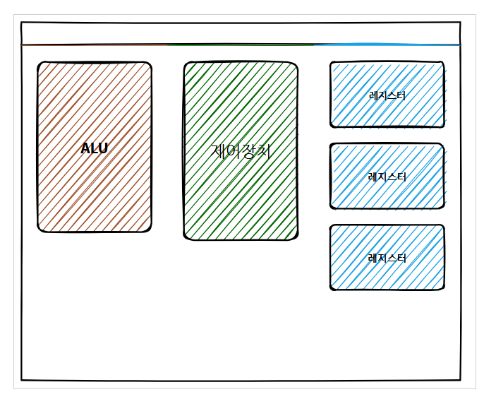 - 레지스터 - CPU가 요청을 처리하는 데 필요한 데이터를 일시적으로 저장하는 기억장치