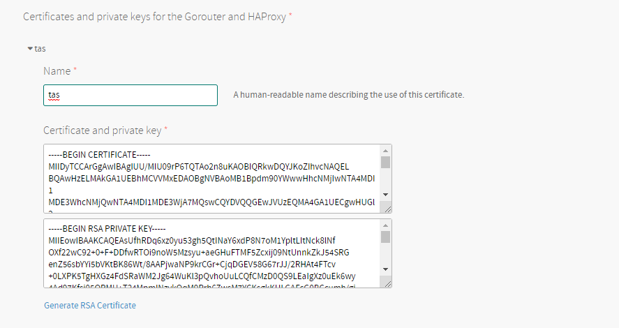 이와같이 Generate RSA Certificate 버튼을 누른후에 입력하면 자동으로 생성됩니다.