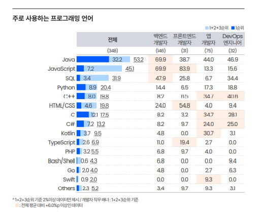 - 대한민국이 자바 공화국이기 때문에 국내 개발자의 70% 이상이 JAVA를 사용하고 있다.