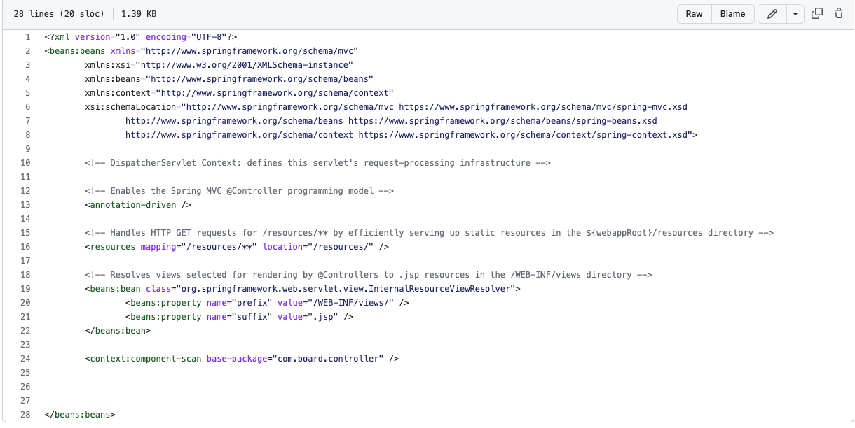 xml 파일설정을 통해 의존성 주입을 개인이 직접 해주어야 하기 때문에 개발환경을 세팅 하는데 굉장히 시간이 오래 걸립니다.