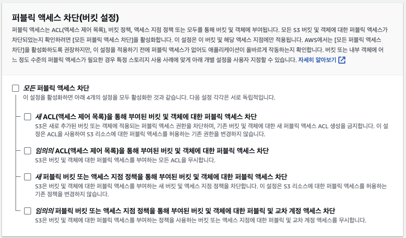 ✅ 버킷에 대한 퍼블릭 액세스 차단 설정