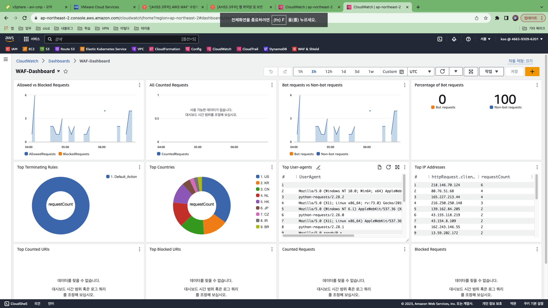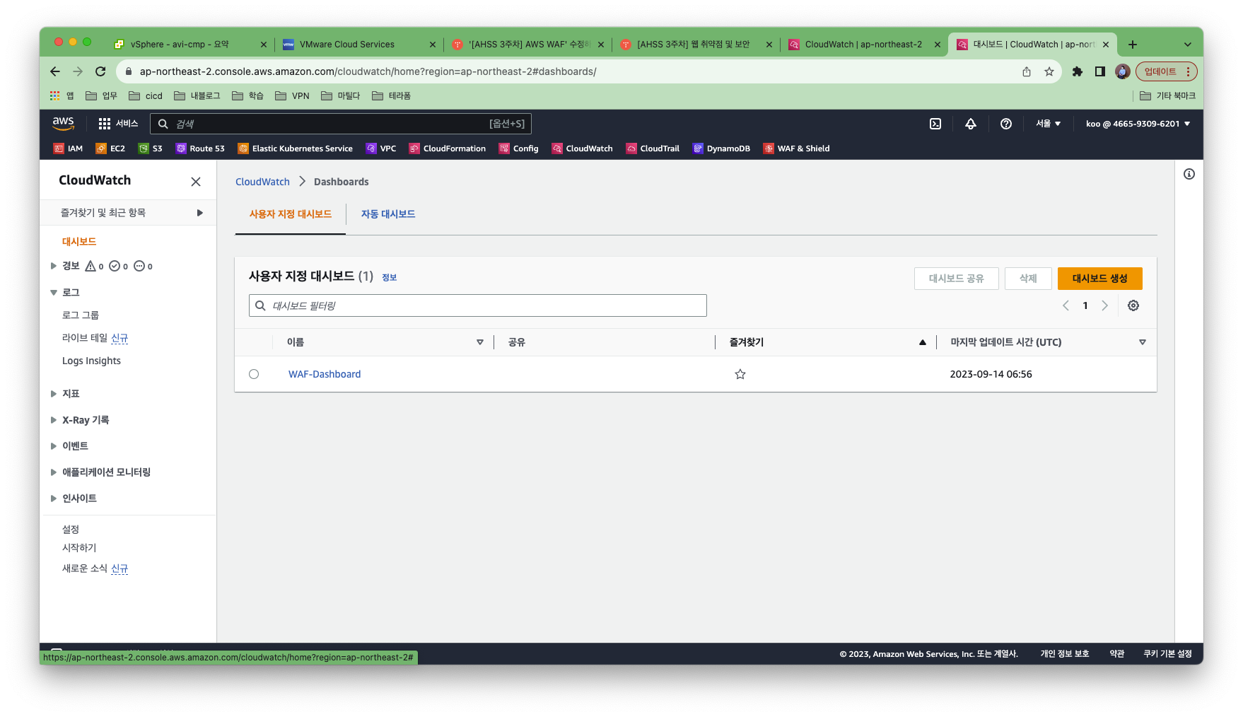 ✅ [ AWS CloudWatch ] - 대시보드 - WAF Dashboard 클릭