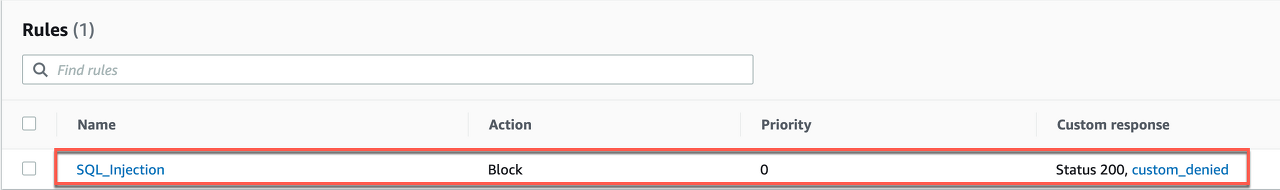 1.6 아래 그림과 같이 SQL_Injection 규칙이 정상적으로 생성되었는지 확인합니다.
