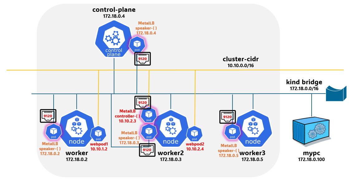 구조 자체는 Metallb의 speaker pod가 호스트 port 매핑을 하는것과 유사하지 않은가 싶다.