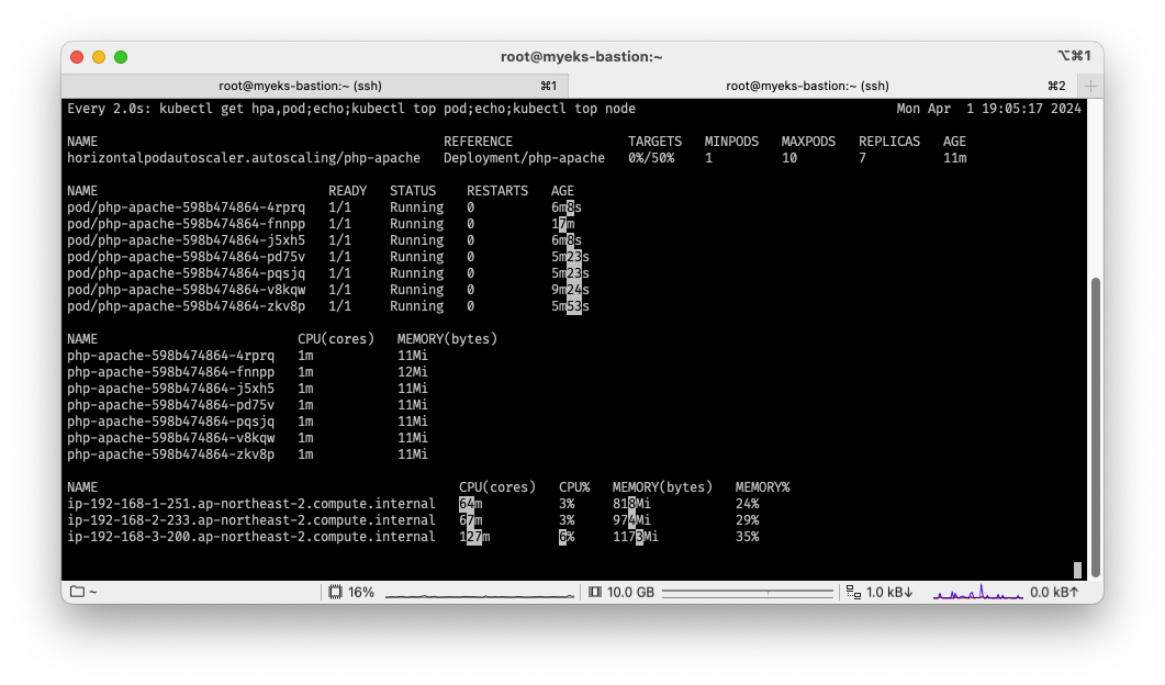 2. HPA 생성 및 부하 발생 후 오토 스케일링 테스트