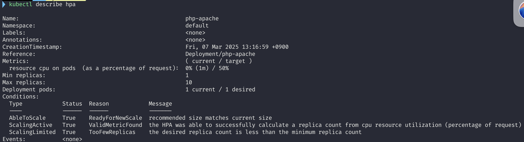 kubectl autoscale deployment php-apache --cpu-percent=50 --min=1 --max=10