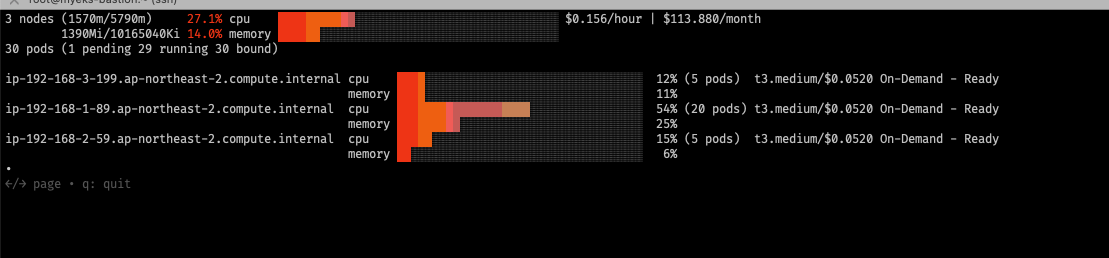 - ASG 명령어를 통해 노드를 5대로 확장 시키면 pod가 deploy가 4개 생성되고 1대를 줄이면 deploy가 3개로 줄어드는 것을 확인 할수 있습니다.