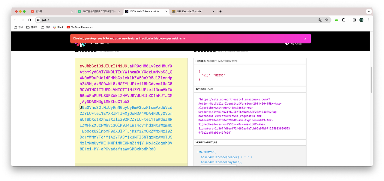 2. ☑️ aws eks get-token으로 받은 토큰은 base64로 디코딩 되어있는 STS의 getCallerIdentity pre-signed URL