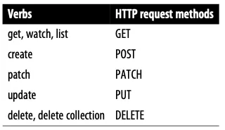 실행 가능한 조작(verbs) : *(모두 처리), create(생성), delete(삭제), get(조회), list(목록조회), patch(일부업데이트), update(업데이트), watch(변경감시)