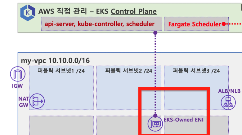 - EKS 는 스케줄러가 특정 조건을 기준으로 어느 노드에 파드를 동작시킬지 결정, 혹은 지정할수도 있음