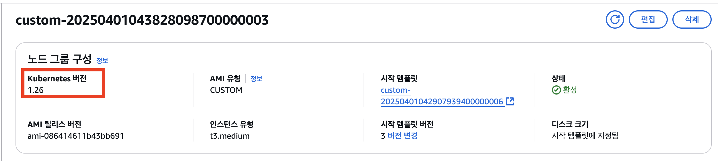 # 클러스터 버전을 변경하면 테라폼 계획에 표시된 것처럼, 관리 노드 그룹에 대한 특정 버전이나 AMI가 테라폼 파일에 정의되지 않은 경우,
