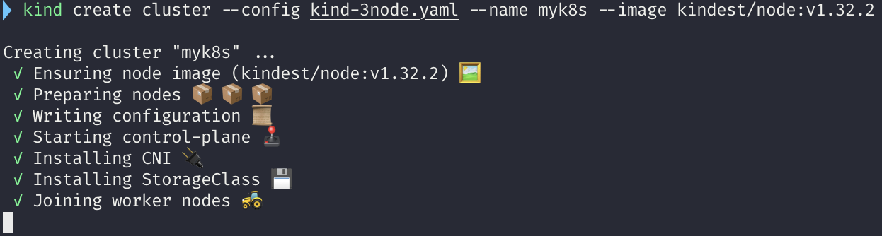 kind create cluster --config kind-3node.yaml --name myk8s --image kindest/node:v1.32.2