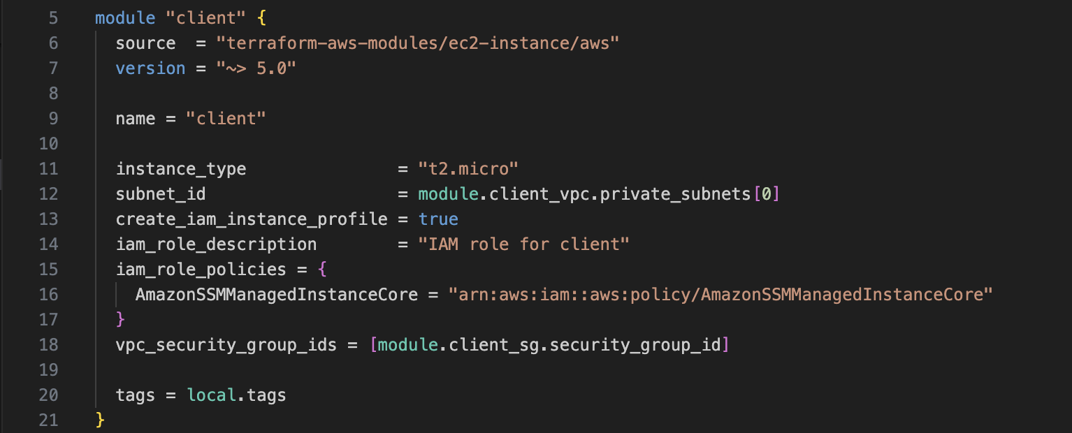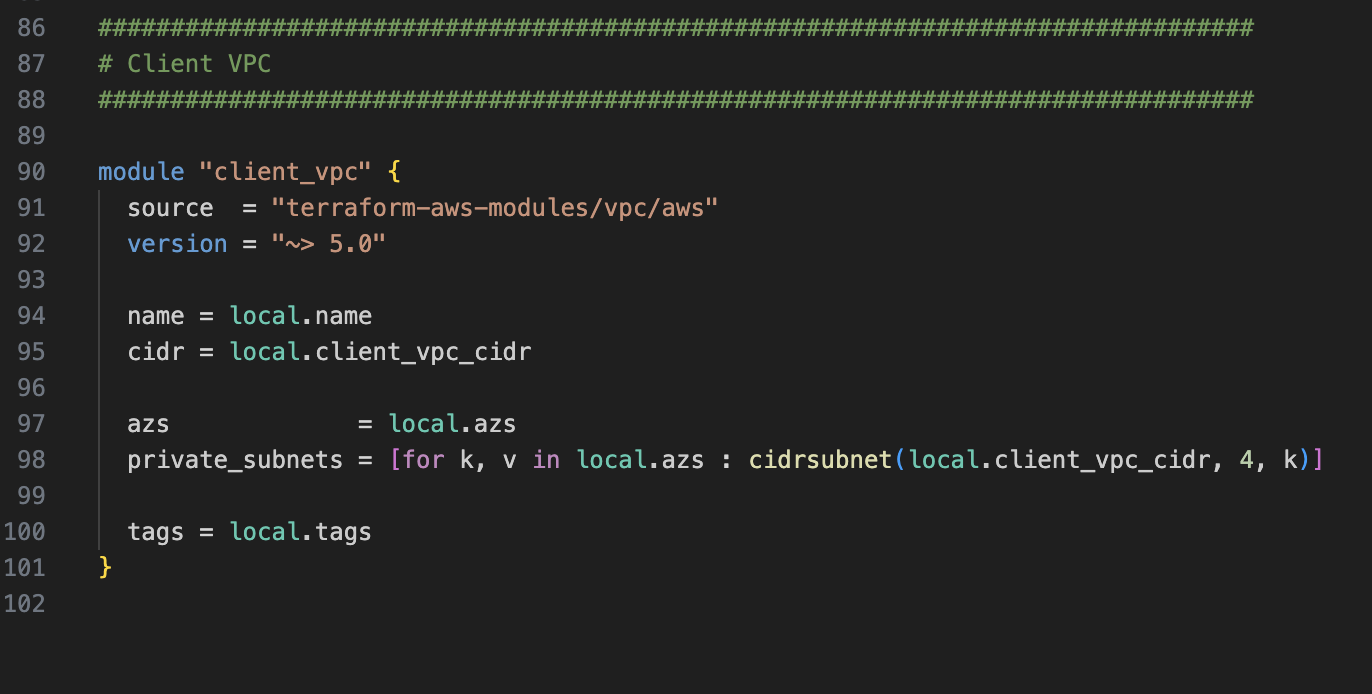 마지막으로, client_vpc 모듈에서는 이 모든 client를 위한 리소스가 구성될 VPC에 대한 내용이 명세되어 있습니다.