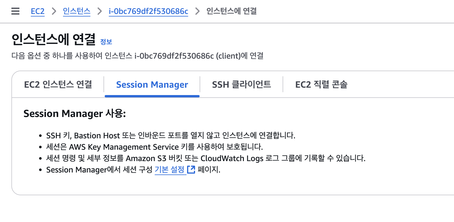 Session Manager로 접근합니다.