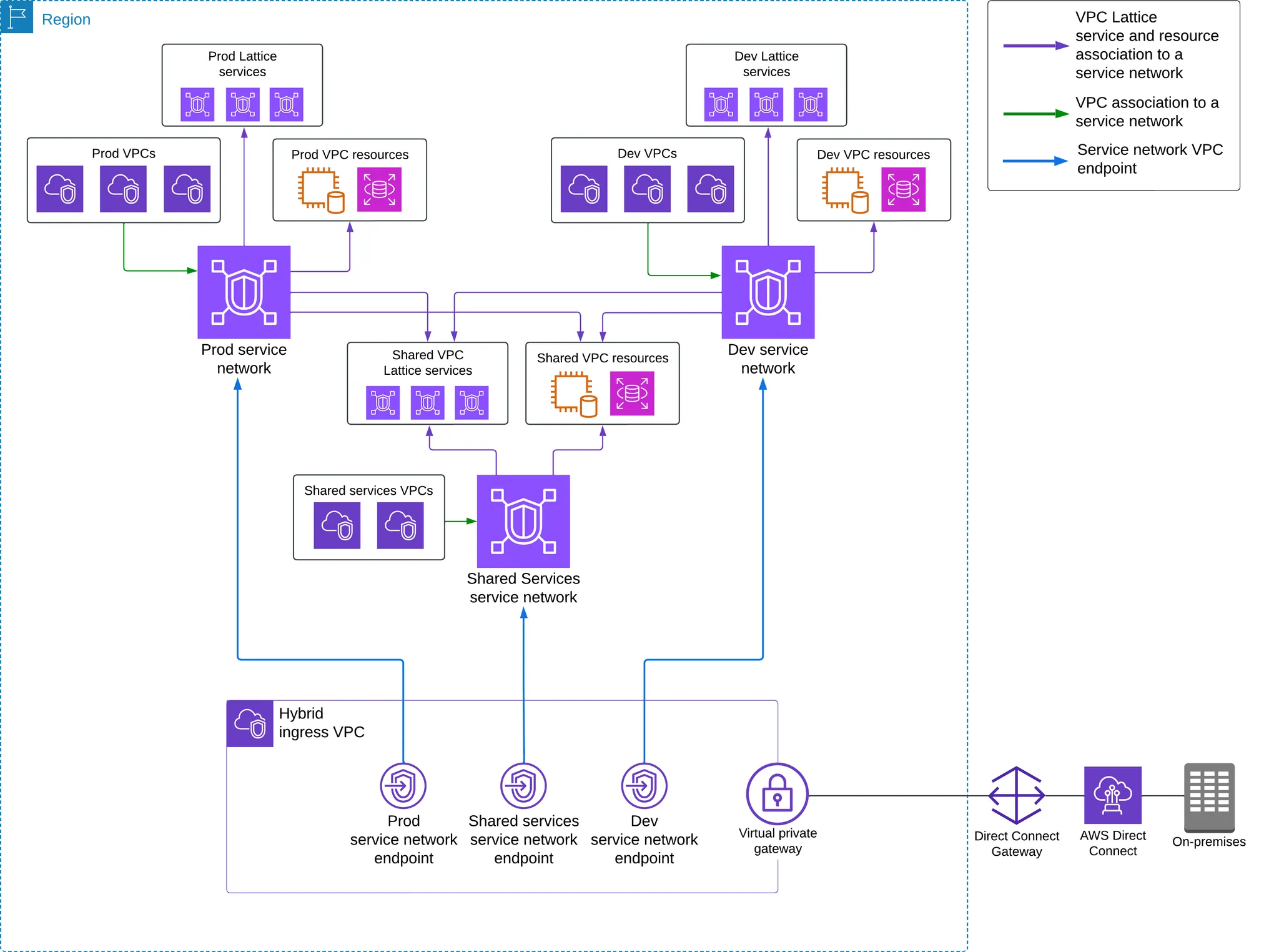 AWS는 이러한 계층적 구조를 Amazon VPC Lattice와 통합하여 제공함으로써, 클라우드 네이티브 환경에서의 네트워킹 요구사항을 효과적으로 충족시킵니다.