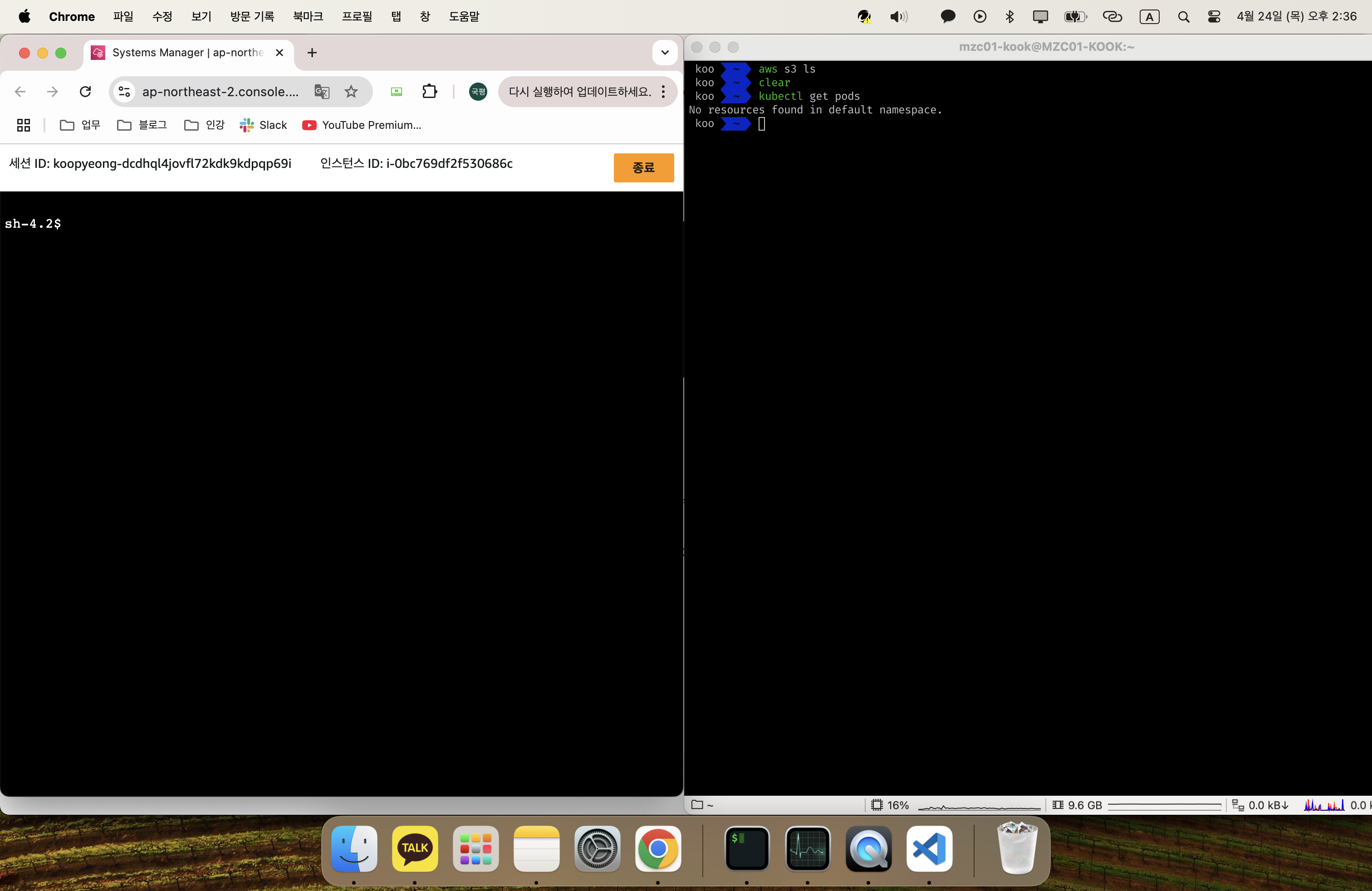 아래 그림처럼 한 쪽에는 client의 터미널을, 다른 한 쪽에는 kubectl 명령을 수행할 터미널을 준비해주세요.