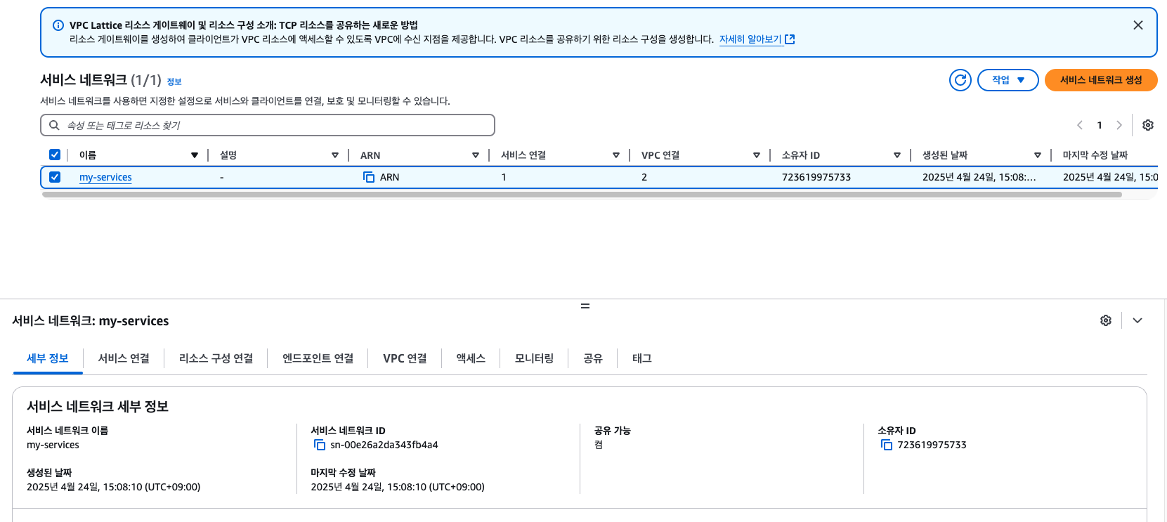 Amazon VPC Lattice Serivce 확인
