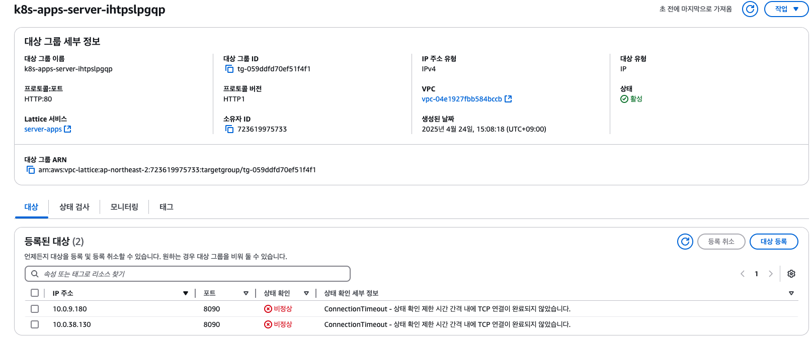 Amazon VPC Lattice Target Group 확인