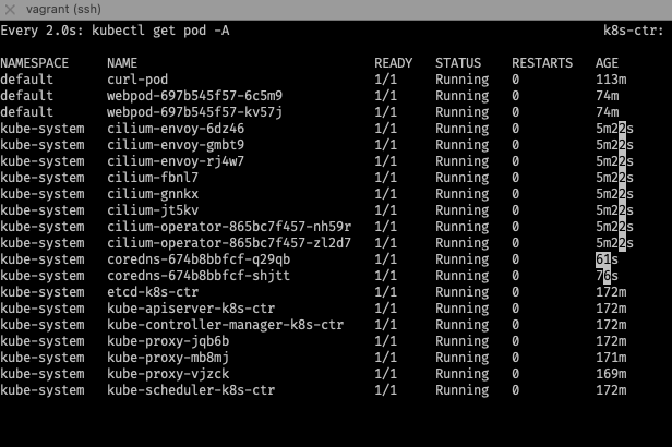 kube-system kube-scheduler-k8s-ctr 1/1 Running 0 26m 10.0.2.15 k8s-ctr <none> <none>