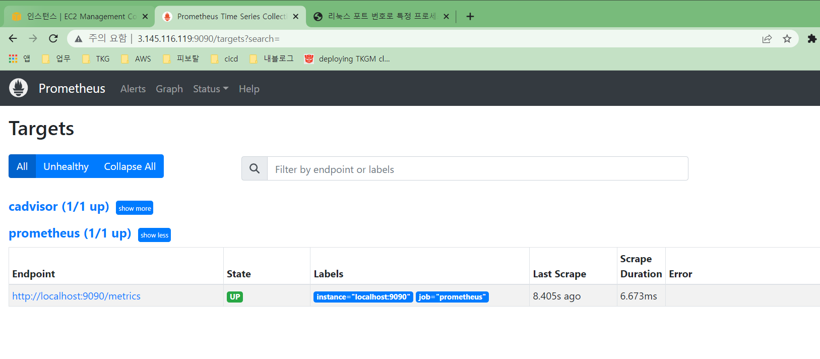 - ./prometheus 데몬 돌리면 9090으로 노출됨
