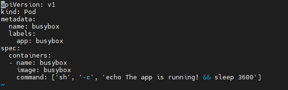 - metadata / 생성할 pod의 이름은 busybox이며 label은